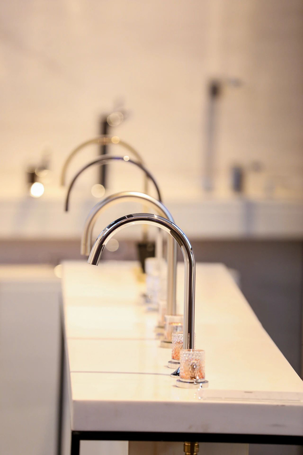 她旗下的品牌包括当代、劳芬,还有德国西曼蒂克、嘉格纳、铂浪高,意大利Antoniolupi,Fantini,Smeg,杜唯淋浴房,天工之作浴室柜,比利时桑拿房,德国小五金等产品。门店店长叶女士为我们全程讲解各产品的特性和当下市场趋势。